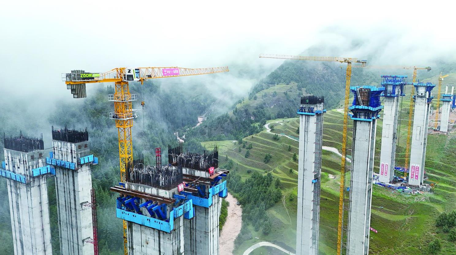 在黃南藏族自治州同仁市扎毛鄉(xiāng),一個(gè)個(gè)高聳的橋柱和塔吊矗立在地勢陡峭的山嶺上和溝谷中,一座雄跨河谷的大橋已初具雛形,這就是同賽高速公路項(xiàng)目控制性工程之一的扎毛河特大橋。