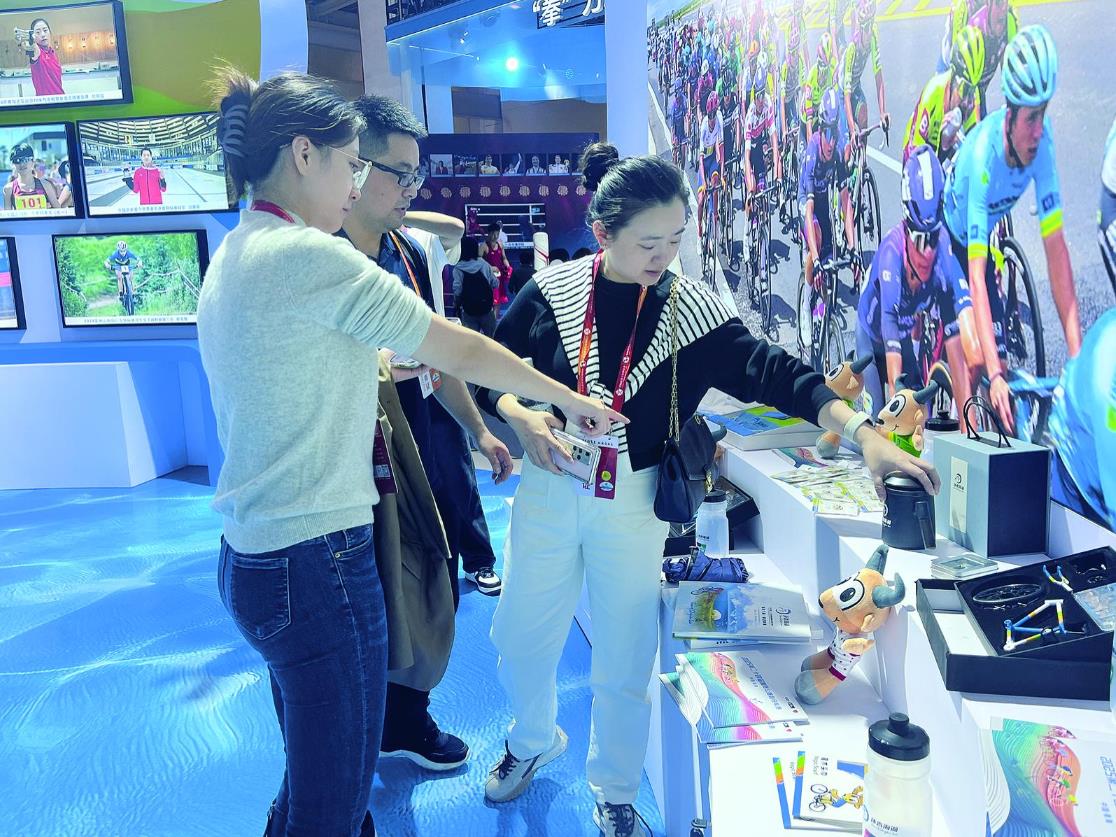 “這是我們環青海湖國際公路自行車賽的文創產品,是個吉祥物小毛絨玩偶,旁邊的是自行車模型……”在產品展示區,工作人員熱情地向大家介紹展品。