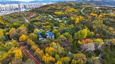 離開野生動物園,記者來到西寧建園最早的綜合性公園——人民公園。36公頃的公園內,各類樹木經春夏洗禮,在秋天披上五彩斑斕盛裝。金黃的銀杏葉和火紅的楓葉在陽光下閃爍迷人光芒,與湛藍天空相互映襯,構成如詩如畫的秋日美景。一位正在拍照的市民告訴記者:“每年秋天我都來人民公園,這里秋景太美,金黃樹葉和火紅花朵讓人心情舒暢。”