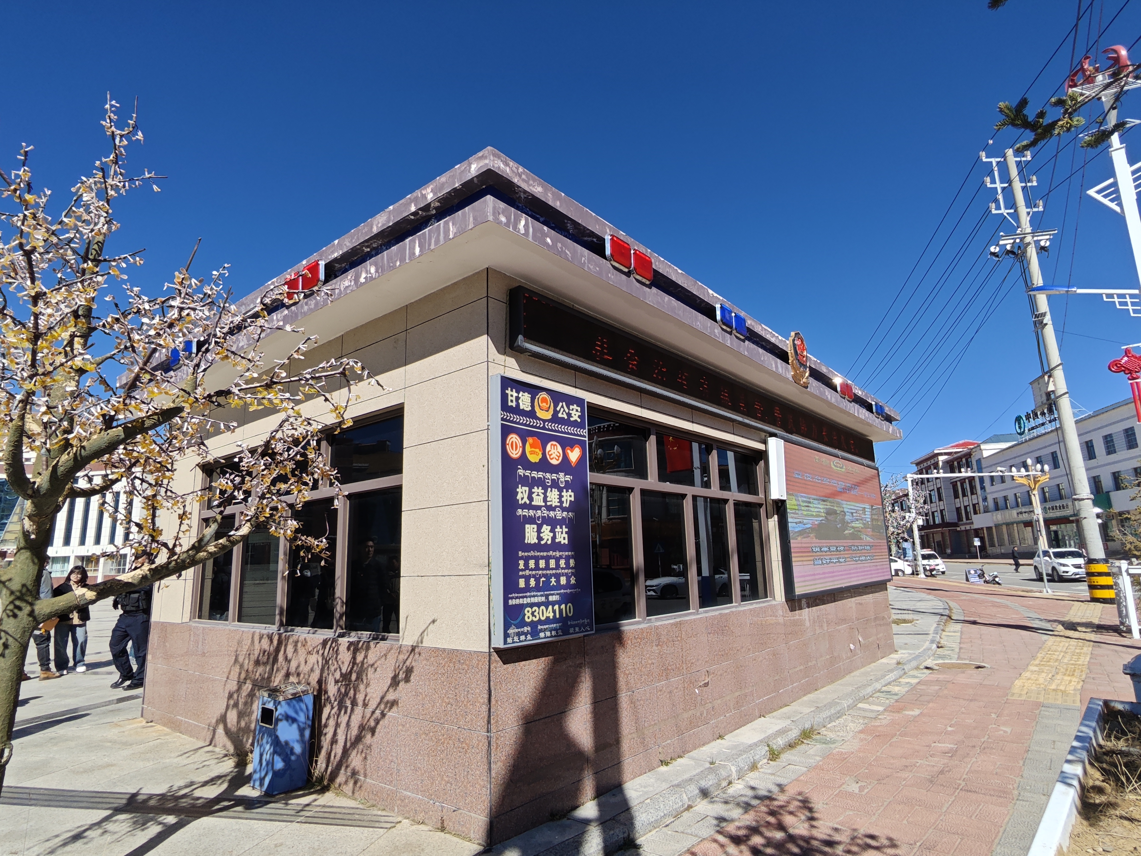 青海省果洛藏族自治州甘德縣公安局柯曲鎮派出所廣場警務站建立在甘德縣吾勤廣場內。這里是警務工作的指揮龍頭、服務群眾的前沿陣地,被稱為24小時永不熄燈的“指揮崗”警務站。在當地居民心中,在那里他們可以尋求幫助、可以找到失物,是個醫療救助點、也是累了可以休息的地方……