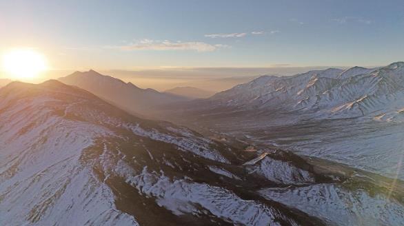 隨著太陽慢慢升高,連綿的山峰輪廓在金色的陽光下變得越來越清晰,一幅絢麗的日出美景呈現在游客眼前。航拍鏡頭中,廣闊的草原、巍峨的雪山,眼前的景象不斷變換,每一個角度都呈現出獨特的美感。