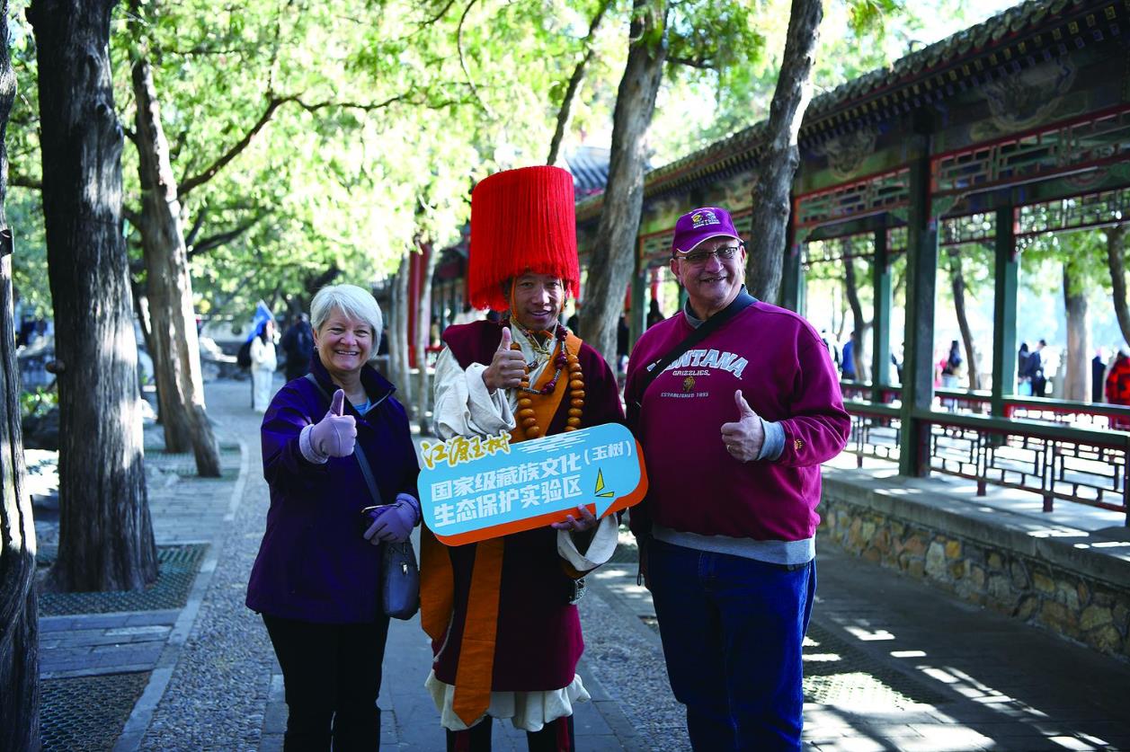 “太棒了!第一次在北京看到藏族服飾展示,這比圖片看起來更有沖擊力、更漂亮呢!”11月22日,玉樹藏族自治州文體旅游廣電局組織州文工團工作人員,身穿傳統的康巴藏族服飾,來到北京市頤和園、天壇、王府井等地打卡,展示玉樹傳統文化魅力,讓首都人民和各地游客近距離領略不一樣的玉樹康巴文化,大家紛紛拍照留念。玉樹藏族服飾,藏族文化的瑰寶,以精美絕倫的工藝、絢麗多彩的樣式承載著千年傳承,其獨特的編織、刺繡與配飾藝術,彰顯著深厚的民族底蘊與草原風情。此次打卡活動不僅促進了兩地的文化交流與融合,更進一步提升了玉樹的知名度和美譽度。