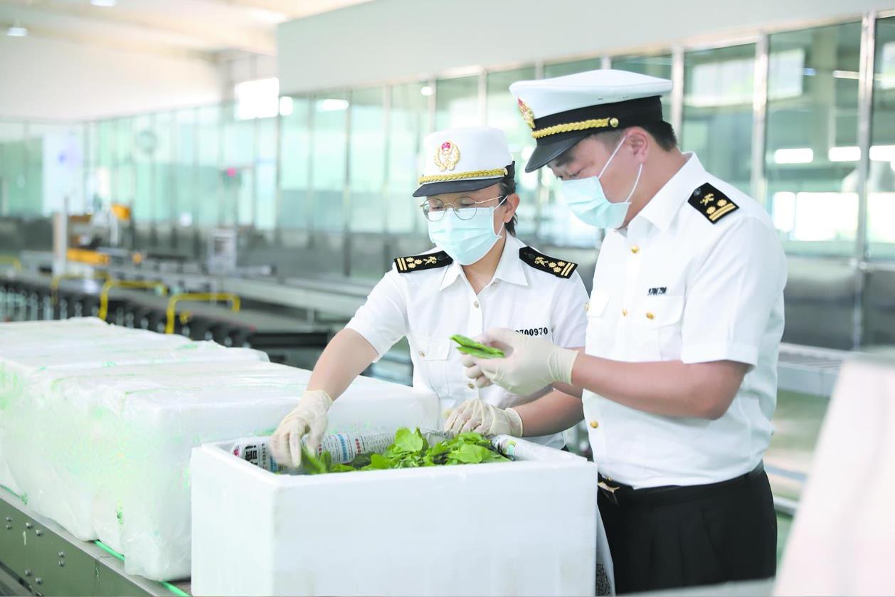 8月12日,來自西寧市大通回族土族自治縣一家供港澳蔬菜備案基地的150公斤高品質豆苗,經過西寧海關工作人員的檢驗檢疫后,通過“空運+汽運”的方式運到澳門,這是繼高原冷涼蔬菜常態化供應香港后,首次進入澳門市場。