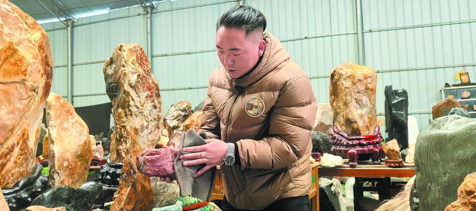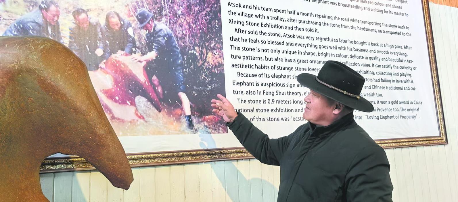 國家館震撼人心,而民間館也讓人大飽眼福。在玉樹奇石博物館,創(chuàng)辦人阿措正在忙著給徒弟們介紹展品。從2007年踏入奇石行業(yè)打拼到2012年開始收集展品再到2015年對外開放奇石展覽,對奇石文化頗感興趣的阿措用近十年時間打造民間奇石博物館,他所收藏的近千件奇石展品中,大到數(shù)十噸,小到幾十公斤,都是他費盡周折從本地及西藏、四川等地搜尋收購而來,每年夏天旅游旺季時省內(nèi)外甚至美國、澳大利亞、尼泊爾等國外參觀游客絡(luò)繹不絕。