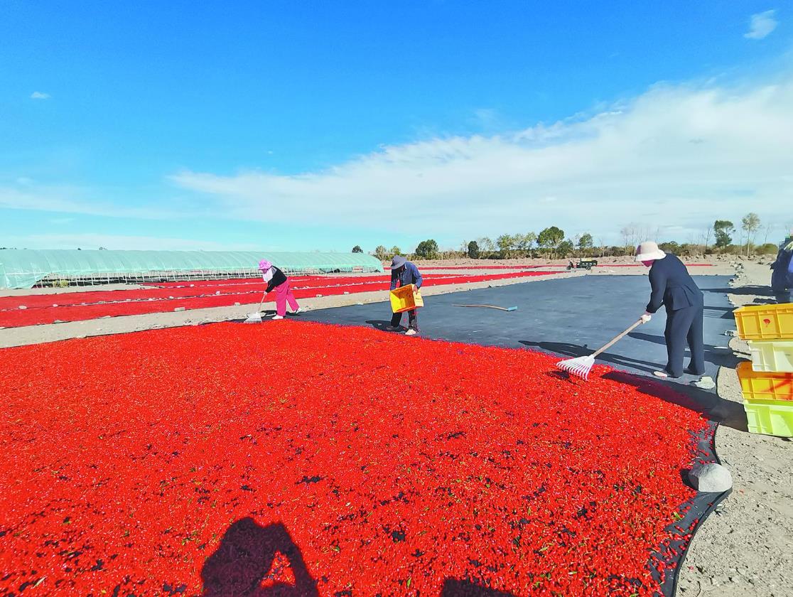 前不久,豐收的喜悅蕩漾在烏圖美仁鄉每個人的心間。田間地頭里,采摘工三五成群地忙著采摘鮮紅的枸杞。之后,新鮮枸杞會被運往格爾木特色生物產業園。園區內,5條枸杞鎖鮮生產線不停地運轉,攤鋪、加工、敲盤、分揀……一粒粒鎖鮮枸杞經過層層篩選,被分類打包,銷往全國各地。“為了進一步提升枸杞的加工能力和保鮮水平,我們引進了枸杞鎖鮮生產線建設項目并已投入生產。這5條生產線采用了先進的低溫、真空、脈動制干技術,能夠在不添加任何添加劑的情況下,最大程度上保留枸杞鮮果的‘鮮滋味’。”烏圖美仁鄉黨委書記哈勝平說。