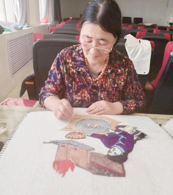 才讓卓瑪在搟氈上做裝飾。受訪者供圖