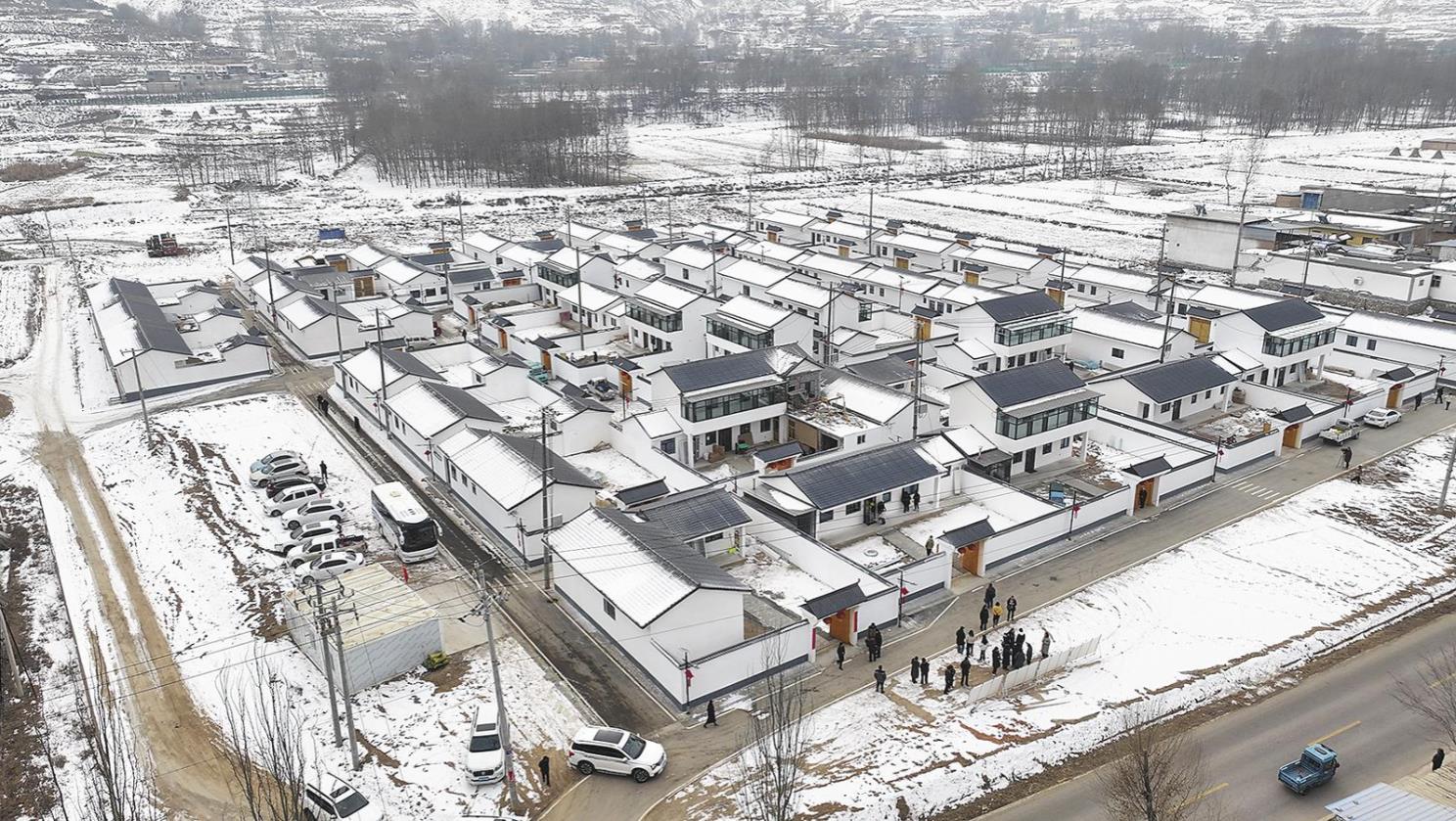 航拍民和縣巴州鎮(zhèn)羊羔灘村集中安置點(diǎn)。陳俊 攝