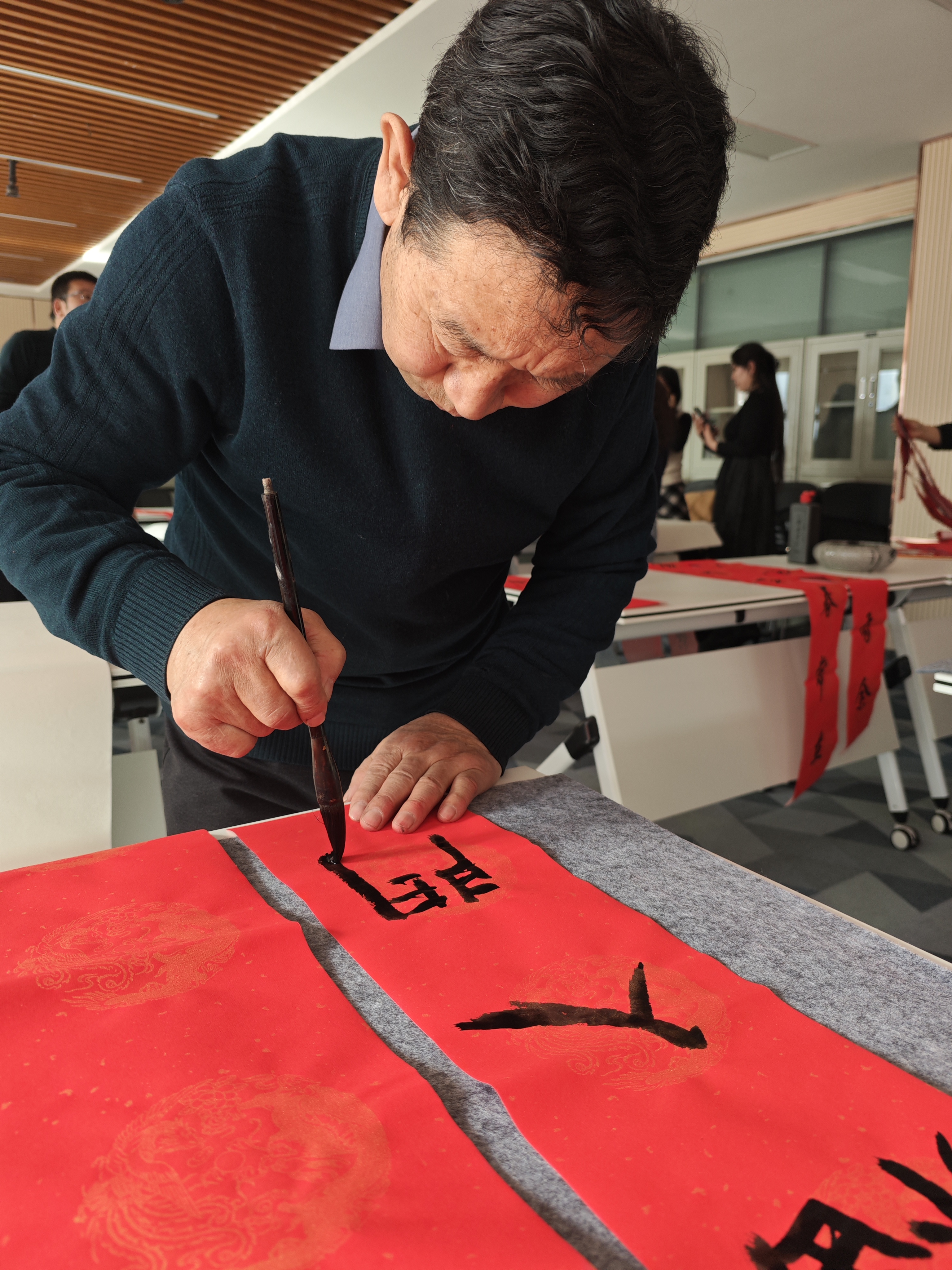 揮毫潑墨,迎春納福,福滿堂。乙巳新春佳節之際,為弘揚中華傳統文化,營造良好節日氛圍。1月21日,由青海省互聯網新聞中心主辦,青海省西海書畫院、青海新聞網有限公司、青海文化藝術網承辦的“巳蛇獻瑞 墨舞新春 迎新年書畫筆會活動”在青海省互聯網新聞中心舉行。眾多書法家揮毫潑墨,為大家帶來新春的祝福。(攝影:李娜)