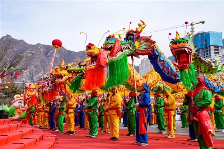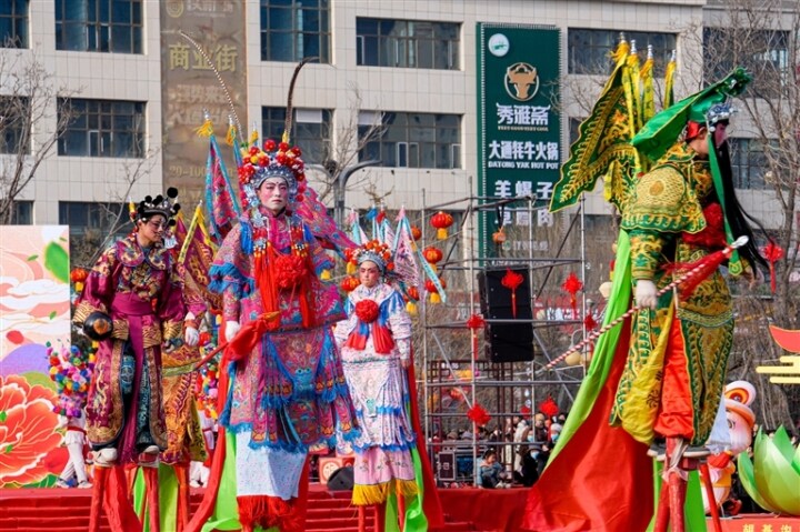 鑼鼓響,歡歌唱,縣城里年味足。搭臺(tái)、架燈、安裝設(shè)備,縣文化廣場(chǎng)上張燈結(jié)彩,“變身”為群眾表演的大舞臺(tái)。這道“節(jié)日大餐”十分豐盛,花兒聯(lián)唱、非遺皮影、四片瓦、社火、滾燈……當(dāng)?shù)孛袼妆硌菡吒髡顾L(zhǎng),各村村民占到了“C位”,共同演繹一場(chǎng)暢快的視聽(tīng)盛宴。