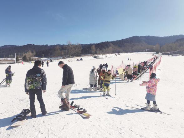 背靠國家森林公園,滑雪愛好者從高處一躍而下,在雪道上劃出一道優美的弧線。笑聲、尖叫聲在滑雪場此起彼伏。“在我們滑雪場,每個年齡段的滑雪愛好者都能找到適合自己的娛樂項目。現場不僅有豐富的娛樂項目,還有各種特色小吃。”汪正全說。