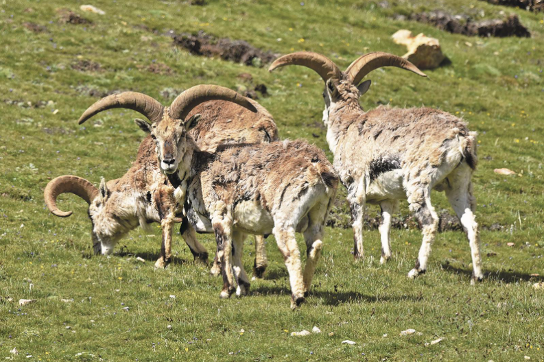 祁連山褶皺深處,雪豹的斑紋與巖石苔蘚渾然一體。這種高山隱士在懸崖間留下梅花足跡,琥珀色瞳孔倒映著流云與星辰。當(dāng)晨霧漫過冷杉林,馬鹿群涉水而過的清音驚起巖羊,整個山谷便蘇醒成躍動的生靈畫廊。
