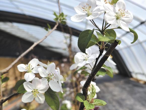 2月21日,在海東市樂都區高店鎮大峽村、東門村的土模塊主動蓄熱溫室大棚內,吊干杏、反季節櫻桃以及蘋果樹等競相開花,一片春意盎然。據介紹,當地溫室大棚內采取移動盆栽、“多茬輪作”的種植方式,使得吊干杏、反季節櫻桃、蘋果、草莓等水果錯峰上市,有效提升了種植戶的經濟效益。謝夢茹 敏文靜 攝