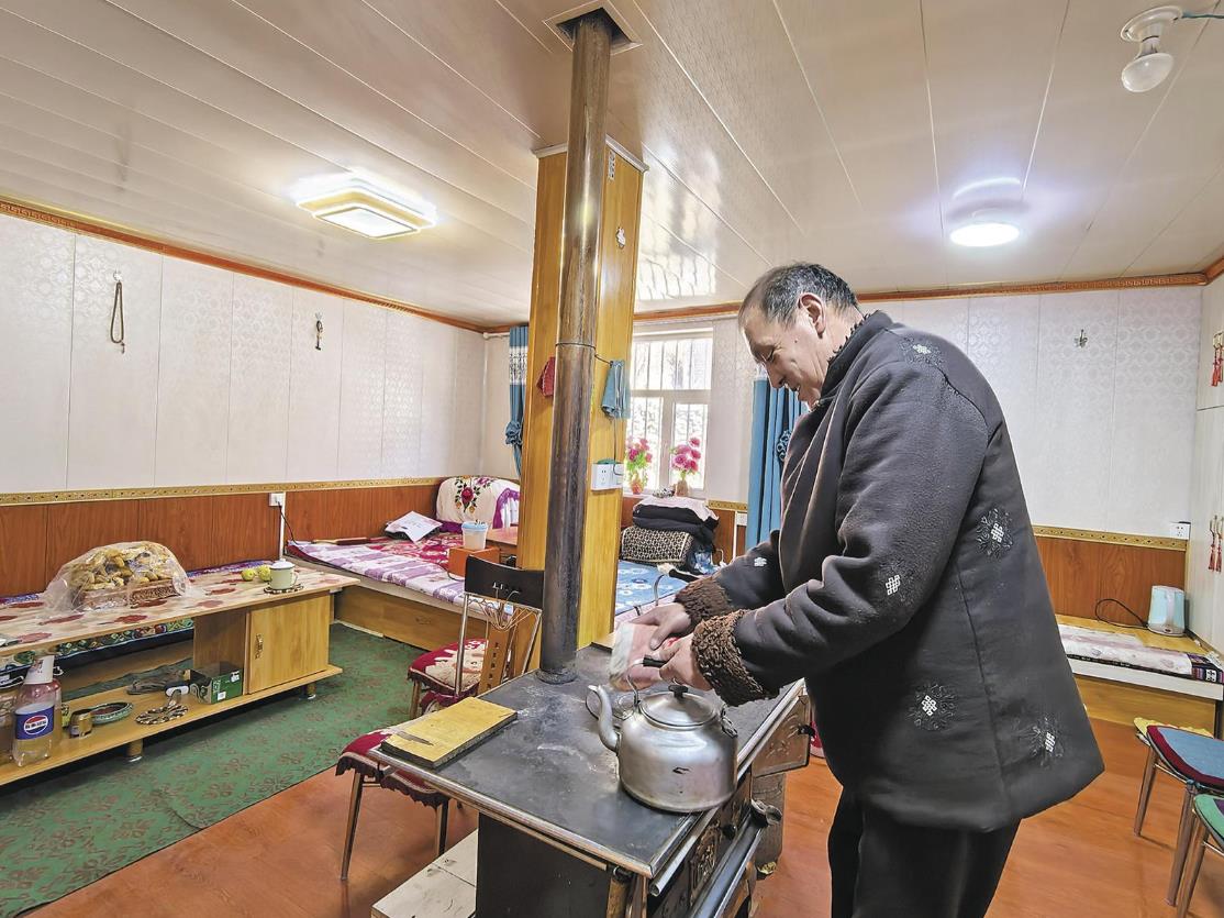 來(lái)到村民拉桑切加家中,屋內(nèi)的火爐溫暖著每一個(gè)角落,桌上擺放著自家炸的油餅和麻花,充滿了生活的溫馨。“以前一到冬天,房子里冷得不行,現(xiàn)在可暖和了,冬天在家里還熱出一身汗呢!”拉桑切加一邊輕輕擦著頭頂?shù)暮怪橐贿呅χf(shuō)。