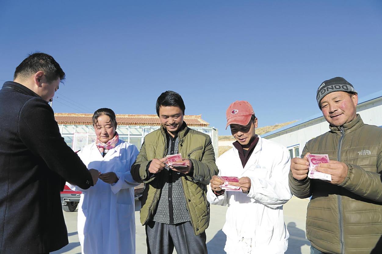 獺兔養殖專業合作社項目戶正在分紅。洪玉杰 攝