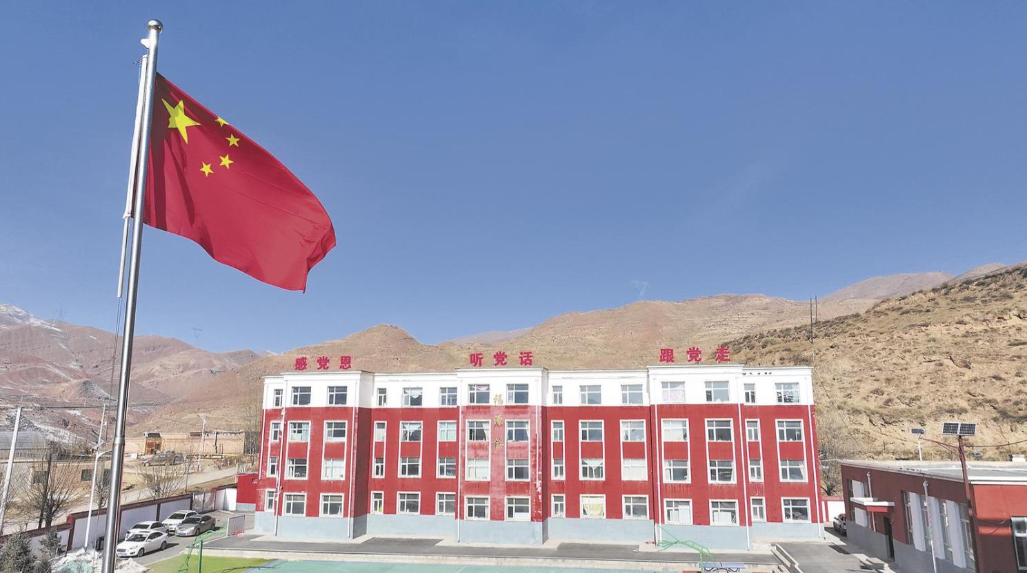 “用一束朝陽,點燃祝福的燭光;用一縷白云,寫滿回憶的詩行;用一朵鮮花,充盈感恩黨的芬芳……”在化隆縣塔加藏族鄉中心學校校園內,孩子們跟著老師再次重溫感恩的詩句,清脆的童聲與教學樓頂“感黨恩、聽黨話、跟黨走”的紅色大字交相輝映。