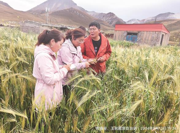 功夫不負有心人。在安海梅的努力下,他們帶進去的青稞良種,在雜多縣扎下了根,當年收獲青鮮草1700千克以上,青稞籽粒也到了乳熟期,不僅顯著提高了飼草產量,也提升了飼草的蛋白含量,進一步調整播種期有望實現糧草兼用,同步解決了雜多本地群眾糌粑生活需求。
