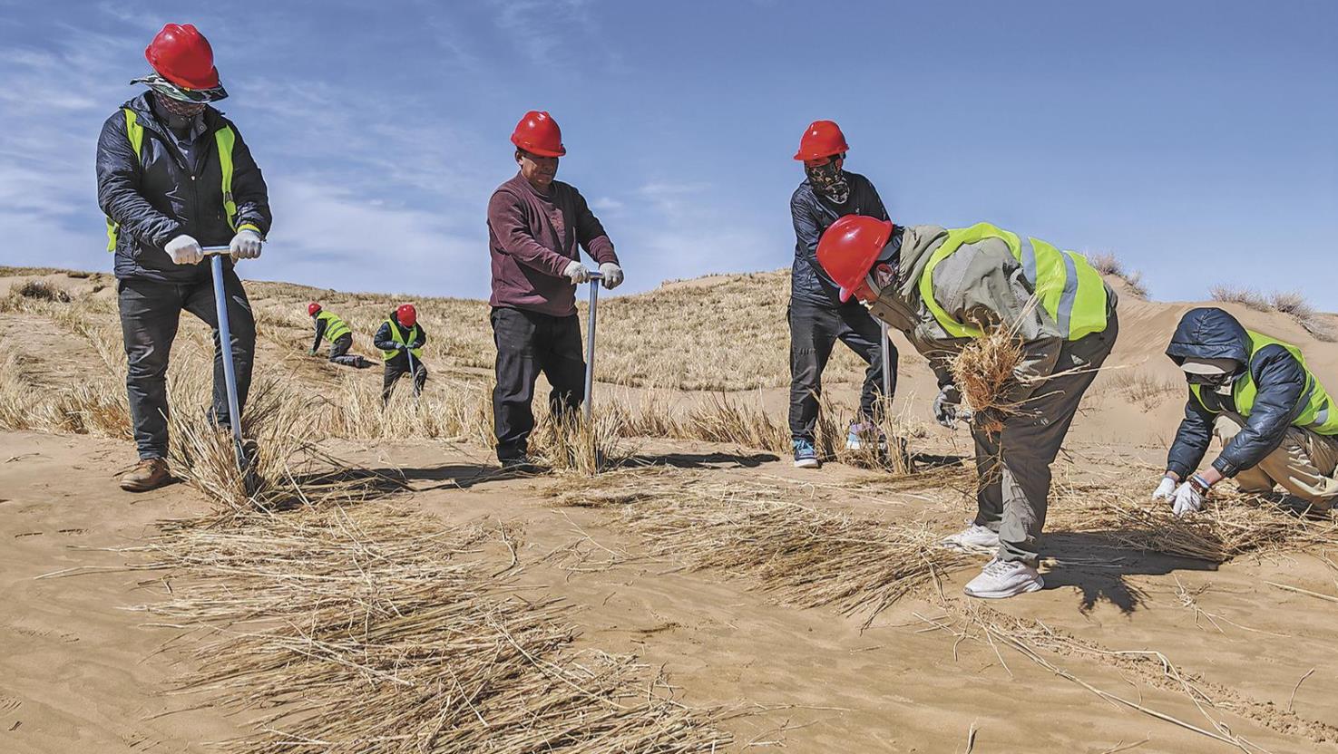 4月14日,海西蒙古族藏族自治州都蘭縣夏日哈鎮河北村,一場防沙治沙行動開展得如火如荼,現場一片繁忙,工作人員全力投入到緊張的作業中。據悉,該防沙治沙項目總投資570余萬元,計劃在1511畝(約100.73公頃)沙化區域鋪設稻草方格。項目自3月25日開工后,穩步推進,現已完成300畝(20公頃),預計將于5月20日全面竣工。項目采用“生態治理+就業幫扶”模式,優先雇傭當地勞動力,已提供超百個就業崗位,有效提升了縣域就業率。