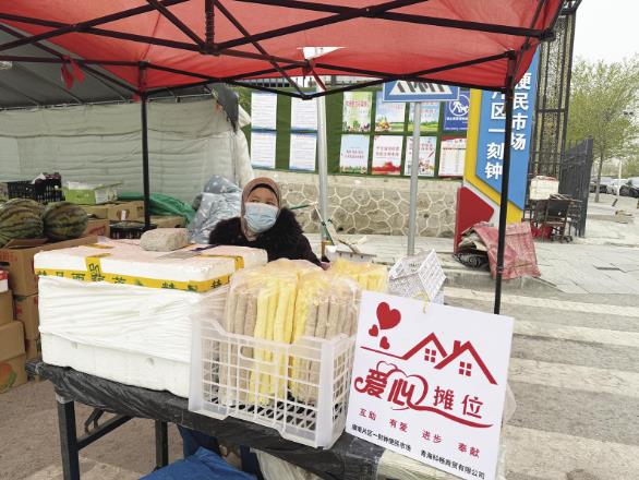 便民市場管理方青海科暢商貿有限公司負責人馬占偉介紹,便民市場對普通商戶每月收取300元的攤位費,但對低保戶免租金,目前已經有13個愛心攤位,現在市場已經把帳篷等物資和硬件設備配備齊全,保障好所有攤主的經營。