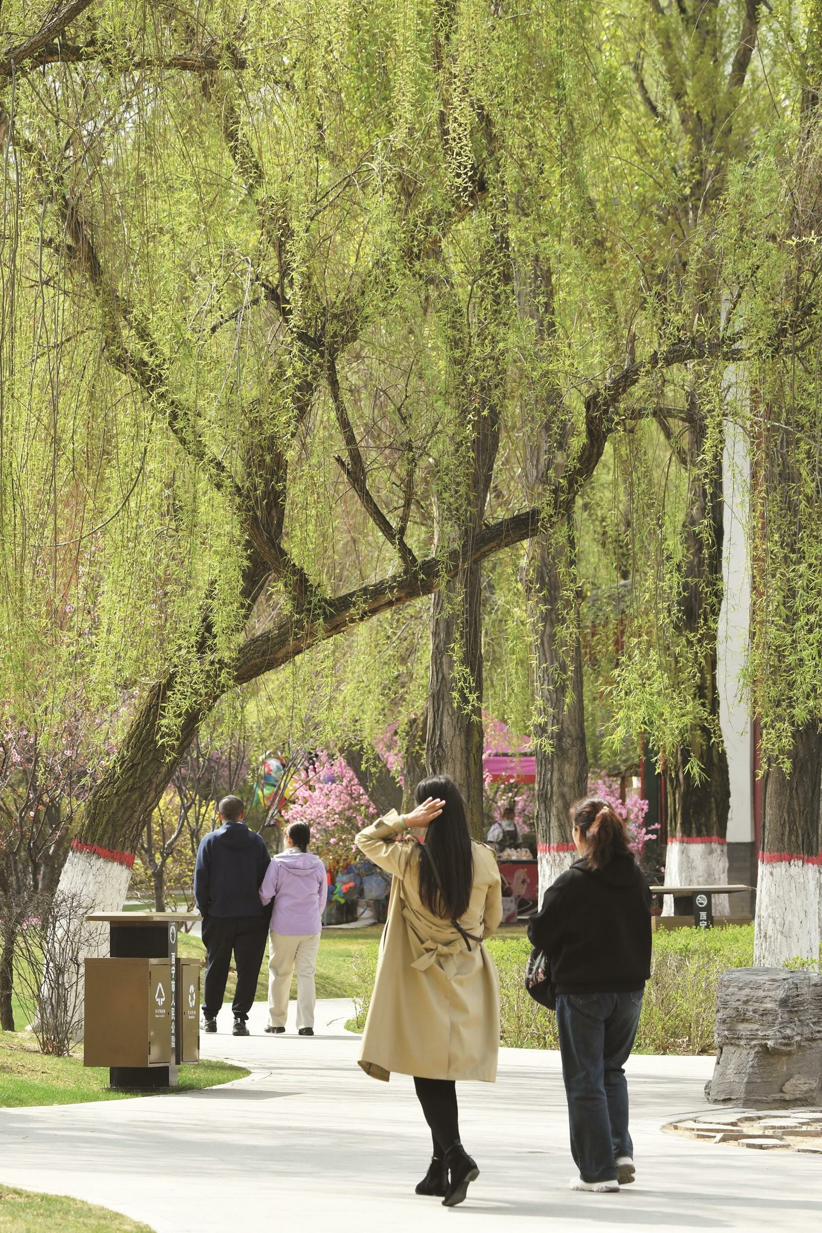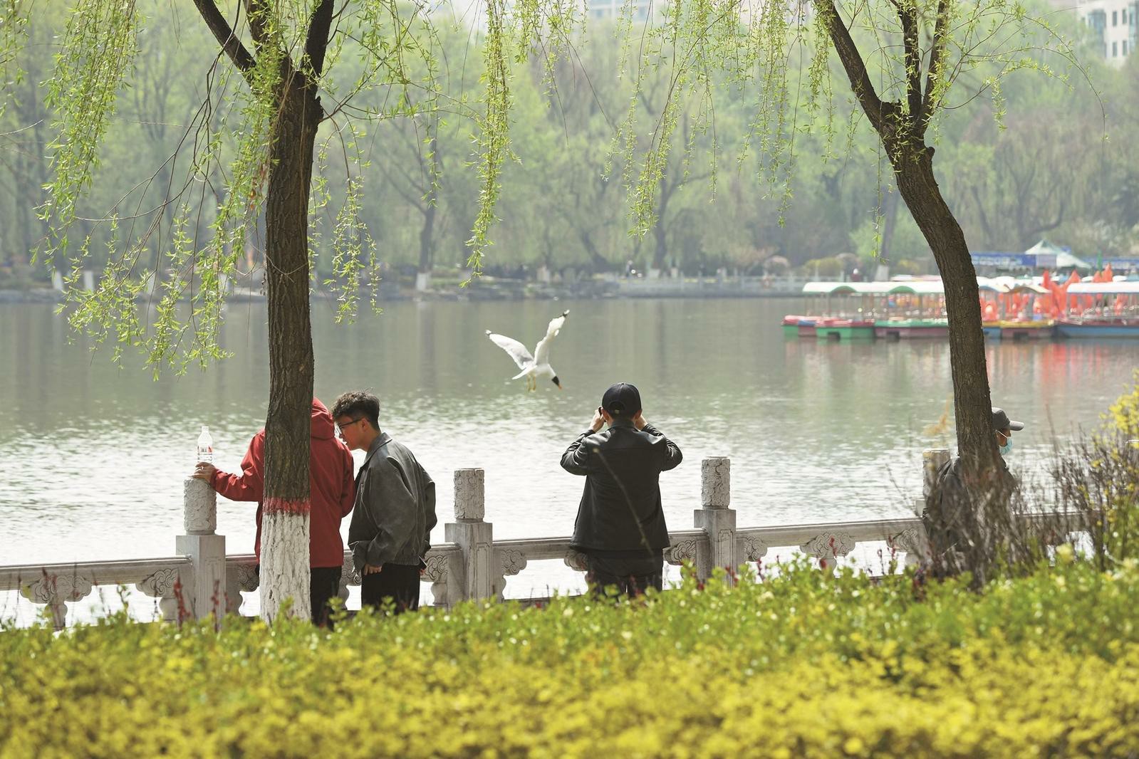 湟水河畔的楊柳柔嫩的枝條,在微風中搖曳。散步、晨練的人們,在這春的氣息中,顯得格外精神。河對岸的住宅區掩映在翠綠中,像是一幅精心設計的春日城市風景畫。