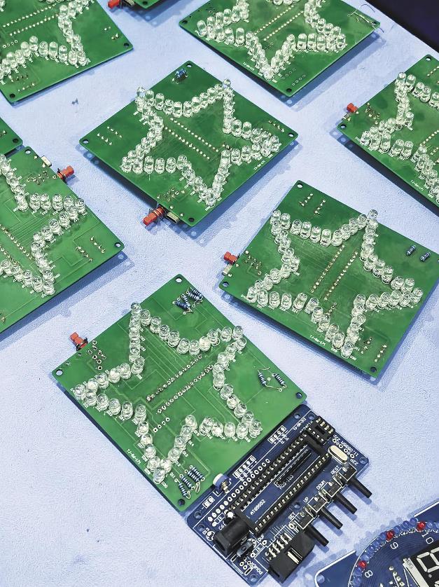 “近年來,芯片成為科技角逐的重要內容。于是,我們考慮開發‘單片機創客’課程,讓學生從焊接入手,開發適合小學生的單片機創客教育體系。”專職科學教師蔚海鵬說,“我們將學生分為低、中、高三個不同階段,低段學生已能夠獨立焊接出簡單的成品,中段學生從電路知識學習開始,學會從電路圖到實物圖的比對辨識,高段學生則從單片機整體出發進行創客智造。”