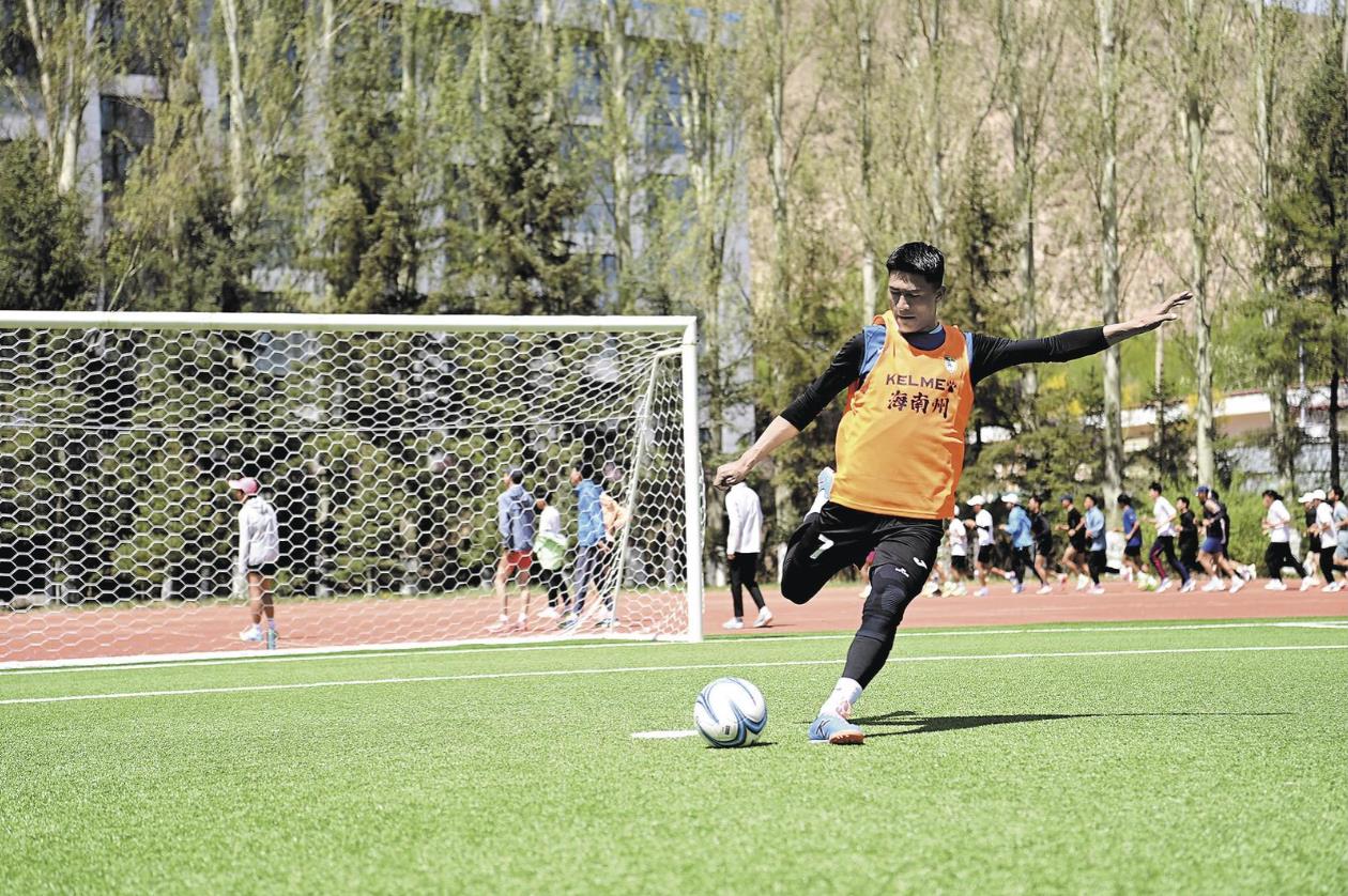 同一個(gè)綠茵場(chǎng)內(nèi),海南龍羊隊(duì)領(lǐng)隊(duì)拉周加,反復(fù)講解著短傳滲透的要領(lǐng),隊(duì)員們兩兩一組,專注于傳接球的精準(zhǔn)度,每一次觸球都力求完美。這支隊(duì)伍,在選拔球員過程中,為了展現(xiàn)海南藏族自治州的風(fēng)采,在全州范圍內(nèi)選出了以青年隊(duì)員為主的40名優(yōu)秀隊(duì)員參賽。