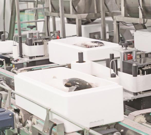 從養殖網箱里捕撈上岸,層層加工后,一條條高品質、批量生產的青海三文魚便會運送到千家萬戶的餐桌上。這樣的捕撈加工場景,每日都會在龍洋知鮮(青海)股份有限公司的智能化養殖基地內上演。
