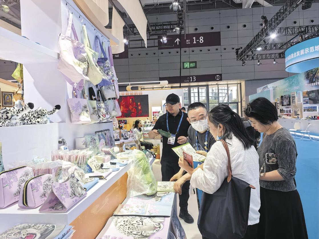 天音文創(chuàng)館的展位前人氣爆棚。李居營(yíng)指著展臺(tái)上憨態(tài)可掬的兔猻、雪豹等毛絨玩偶和各種精美的徽章、冰箱貼等介紹說:“我們的文創(chuàng)產(chǎn)品以青藏高原本土明星物種為主題,希望通過這些可愛的文創(chuàng)周邊,讓更多人了解和關(guān)注青藏高原的野生動(dòng)物。”一位參觀者拿起一個(gè)雪豹冰箱貼,愛不釋手:“太可愛了,這些文創(chuàng)產(chǎn)品不僅有紀(jì)念意義,還能讓我時(shí)刻想起那些生活在高原上的生靈。”在天音文創(chuàng)館的展臺(tái)上,小雪豹凌小蟄的文創(chuàng)產(chǎn)品非常吸睛。鑰匙扣上的凌小蟄睜著圓溜溜的眼睛,被救助人員輕輕抱起;冰箱貼上的凌小蟄張著大嘴,正打算飽餐一頓……李居營(yíng)說:“今年,小雪豹凌小蟄被救助的故事感動(dòng)了無數(shù)人,于是我們就把這份溫暖做成文創(chuàng),希望讓更多人記住青海雪域高原的生靈之美。”