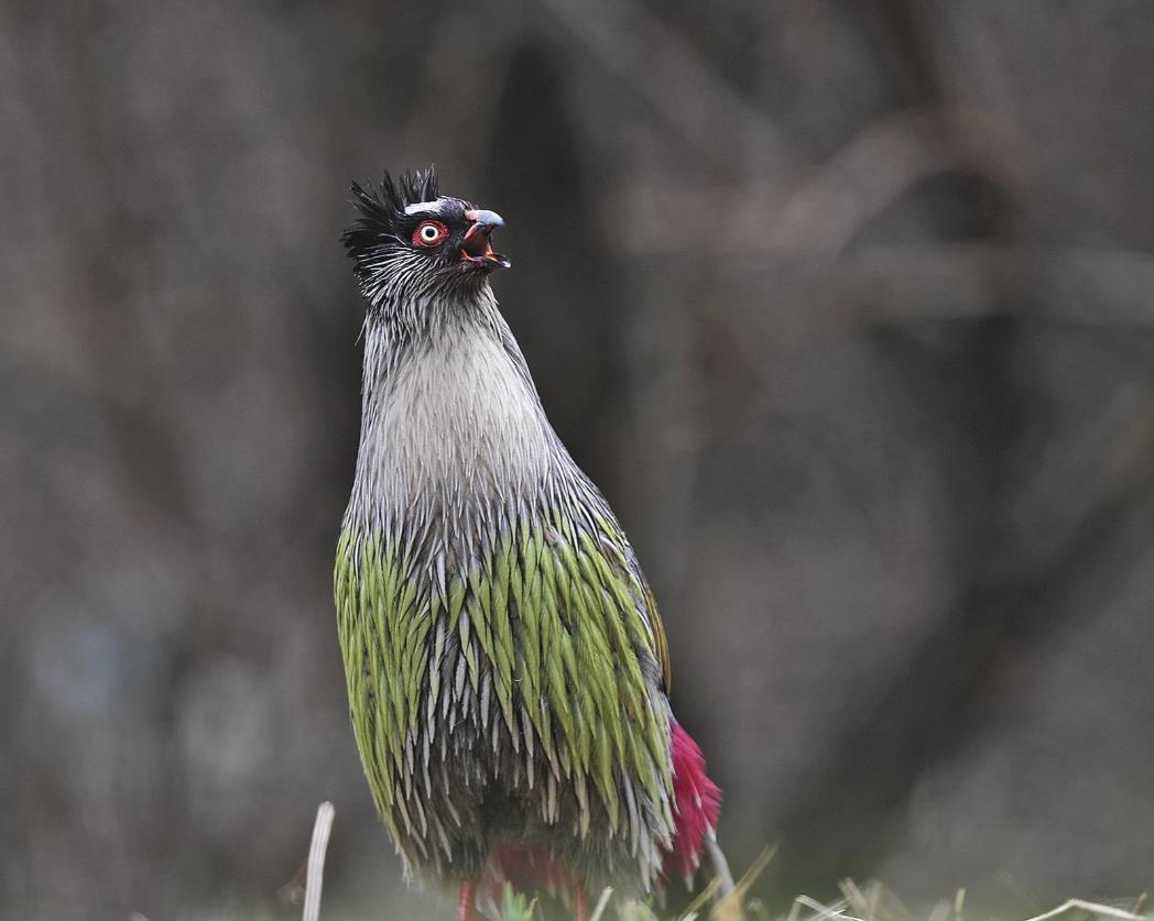 晨光初露,寺溝管護站綠意漸濃的針葉林間,一串細碎的“吱咕”聲劃破山間靜謐。兩只披著“斗篷”的血雉警惕覓食,靈巧的喙精準地翻開腐殖層,松籽與幼蟲在晨露中折射出微光。
