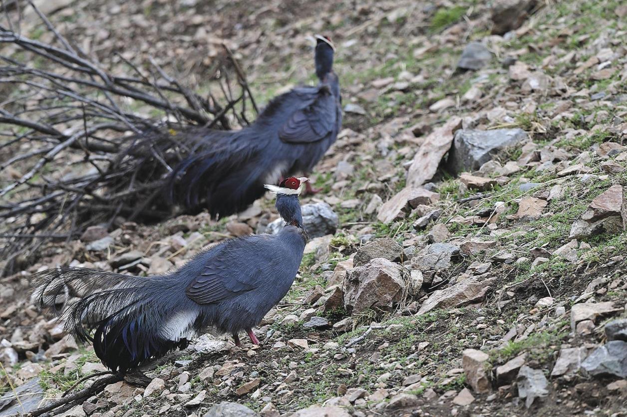 夕陽沉入牛心山,油葫蘆管護站的油松林間,十余只藍馬雞鈷藍色的尾羽掠過暮色,它們的低鳴與松濤應和,蓬松的尾羽掠過經年松針,仿佛神靈遺落在人間的織錦。