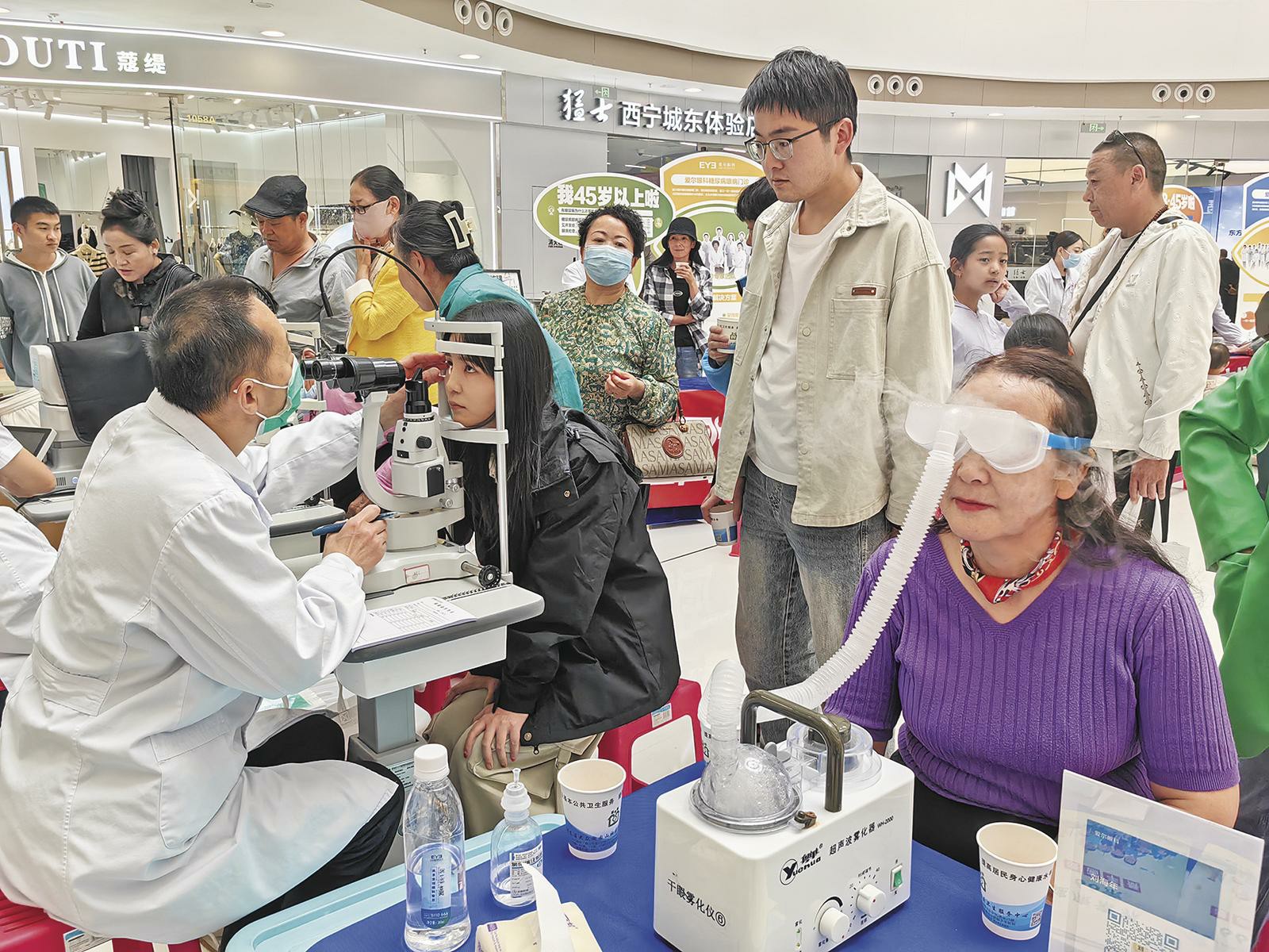 6月6日是第30個全國“愛眼日”。當日,在西寧市城東區中惠萬達廣場,醫務人員為現場群眾進行視力檢測、眼病篩查。“愛眼日”當天,西寧各地廣泛開展形式多樣的眼健康科普宣傳活動,包括走進學校、社區開展義診等,旨在倡導群眾健康用眼,增強大家的愛眼護眼意識。李興發 攝