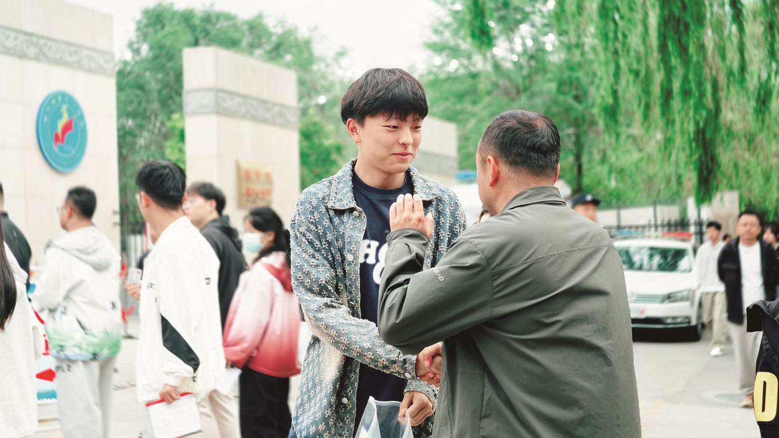 家長的守護和陪伴,在此刻被賦予更深的價值。“沒想到爸爸媽媽還預訂了賓館,就在考點外不遠的地方,爸爸專程做好飯送到酒店來,中午可以在酒店休息。謝謝爸爸媽媽這么多年來的照顧和陪伴。”一名考生擁抱著母親說。
