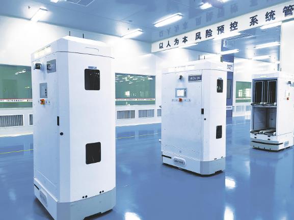 黃河公司IBC電池制造車(chē)間內(nèi)的運(yùn)輸機(jī)器人。宋翠茹 攝