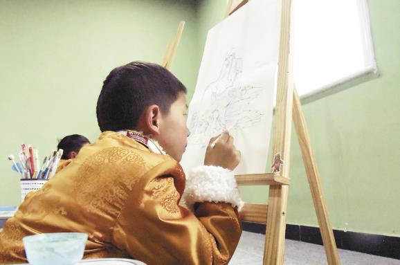 6月14日,果洛藏族自治州團(tuán)委“果洛青創(chuàng)”基地慈愛之光公益藝術(shù)院內(nèi),負(fù)責(zé)人索南華細(xì)心指導(dǎo)著繪畫愛好者和學(xué)員。索南華介紹,藝術(shù)院是他在2018年3月成立的,今年2月,通過(guò)果洛團(tuán)州委“青年駐地計(jì)劃”,藝術(shù)院遷至租金、水電均免費(fèi)的青創(chuàng)基地,開啟了他新的公“藝”之路。“搬遷到青創(chuàng)基地后,有很多繪畫愛好者前來(lái)體驗(yàn)學(xué)習(xí),藝術(shù)院的人氣和名氣提升了不少,同時(shí),藝術(shù)院一直在免費(fèi)培養(yǎng)殘疾人、孤兒群體的學(xué)員,致力于讓他們學(xué)習(xí)文化和技藝,將來(lái)靠自己過(guò)上理想的生活,綻放屬于自己的光彩。”索南華說(shuō),藝術(shù)院必要的開支是用自己藏香店的收入來(lái)解決,一直以來(lái),他都抱著一顆慈善的心,積極聯(lián)系社會(huì)各界慈善機(jī)構(gòu),匯聚各方愛心,為在藝術(shù)院學(xué)習(xí)的“特殊”學(xué)員撐起未來(lái)的希望。