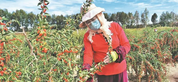 農戶正在摘枸杞。記者 譚梅 攝