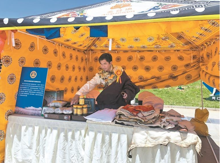 激烈的賽事之外,同仁市還帶來了豐富的文化和農畜產品展覽。唐卡、藏服、堆繡、羊毛鞋墊別具特色,雞蛋、沙棘汁、酸奶、風干牛肉等農畜產品琳瑯滿目。青海晟大生態農牧科技有限責任公司總經理陜真博感慨:“賽事平臺是絕佳的展銷窗口!我們借此推廣金黃果鮮蛋,以賽為媒拓寬銷路,讓高原特色農貨‘走出去’。”