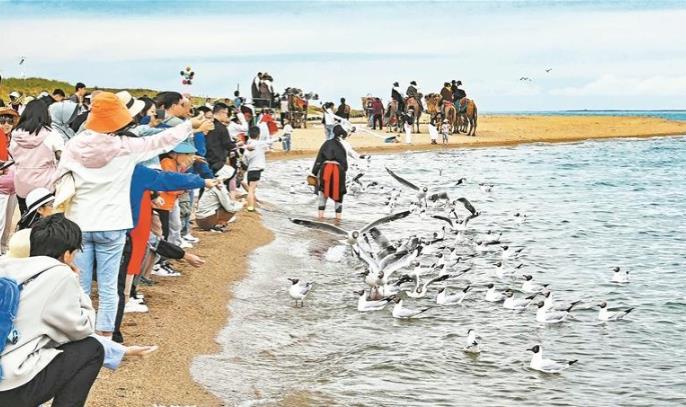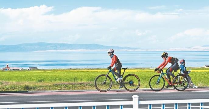 漫步二郎劍半島,人與自然和諧共生的場景隨處可見:游客們輕步靠近水鳥,靜靜觀賞湟魚逆流洄游;騎上牦牛、駱駝與湖景合影,駕駛沙灘摩托在湖畔馳騁,歡聲笑語回蕩在天地間。警用平衡車穿梭人群,以靈活高效的巡邏方式,為景區安全保駕護航。環湖公路上,騎行游客與藍天白云、湖水、自然景觀融為一體,前行的車輪為寧靜的自然景觀帶來動感之美。許多游客也與生態管護員一起參與生態管護,美景珍貴,大家的小舉動讓青海湖更美。