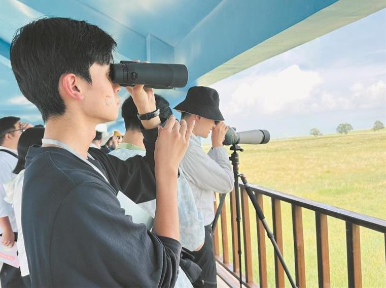 戶外瞭望臺上,大家紛紛用望遠鏡搜尋普氏原羚的蹤跡。有人發現遠處草原上奔跑的身影,興奮地招呼伙伴。碧波蕩漾的青海湖與靈動跳躍的普氏原羚構成一幅人與自然和諧共生的畫卷,為青年們上了一堂生動的自然教育課,讓他們感受到中國最美湖泊的魅力。