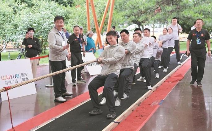 “加油,加油,海西,加油……”廣場西北角,此起彼伏的加油聲吸引了人們的目光。原來,青海省第一屆職工拔河大賽總決賽正在如火如荼地進(jìn)行,經(jīng)過各賽區(qū)選拔,來到總決賽賽場的共有來自全省各地區(qū)的19支參賽隊300余人。