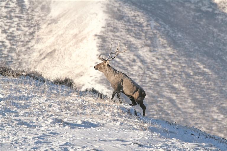 “旁邊的馬鹿膽子很大,我拍這張照片的時(shí)候距離不到20米,它不但沒跑,還擺了好多造型。”