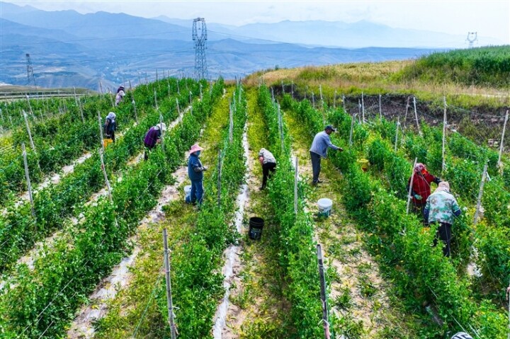 九月,自湟源縣巴燕鄉出發,車輛沿蜿蜒山道穿行,最終抵達西嶺臺村,站在山頂高處遠眺,梯田層疊如畫,四周麥田已經泛起成片金黃,而山間的一抹翠綠卻格外引人注目,成片的荷蘭豆苗枝葉繁茂,累累豆莢掛滿枝頭,呈現出一派生機勃勃的豐收圖景。