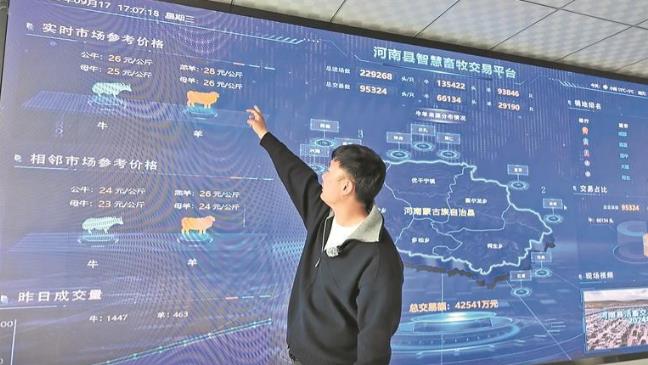 成都,26.2%;臨夏,22.3%;湟中,19.6%;大通16.6%;河北,12.3%,截至17時,活畜交易集散中心數據中心的大屏幕上實時顯示著當日牛羊的銷地排名,以及檢疫、消毒、交易、托管等全流程信息。為什么銷往成都的牛羊肉排名第一?經理韓永成解釋:這說明成都市場對青海牛羊肉的認可度高。“這里是集散中心的大腦。信息化監(jiān)控平臺可以做到全流程監(jiān)控,確保每頭(只)交易的牛羊可以溯源,維護買賣雙方的權益。”韓永成說,數字化交易系統(tǒng)的引入,使得河南縣農畜交易實現了牛羊來源可查,去向可追,全程可控。