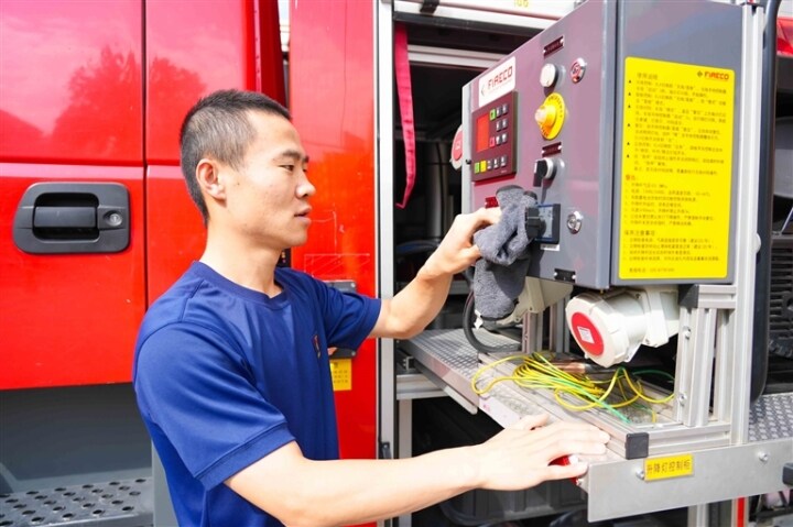 “國慶假期人流車流密集,突發(fā)事件風(fēng)險升高,我們的備勤標(biāo)準(zhǔn)只能升不能降。”王玉勝一邊說著,一邊彎腰查看消防車的輪胎氣壓,指尖劃過設(shè)備接口時格外仔細。記者注意到,他的臺賬本上,每臺通信設(shè)備的編號、維護時間、測試數(shù)據(jù)都記錄得密密麻麻,兩小時已完成3輪設(shè)備排查:從車載衛(wèi)星電話的信號校準(zhǔn),到應(yīng)急通信帳篷的線路連接測試,再到便攜式電臺的通話音質(zhì)檢查,任何細微隱患都不放過。“通信是救援的‘生命線’,哪怕一根連接線老化,都可能耽誤救援時機。”王玉勝拿起一臺電臺貼在耳邊試音,清晰的指令聲在營區(qū)內(nèi)回蕩。