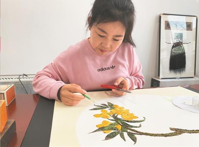 “你看這幅畫,樹上結(jié)著黃澄澄的枇杷果,枝椏上片片綠色的樹葉,就像真的一樣!”張吉祥的言語中透著自豪,說話間一縷縷絨毛被他貼在畫上,隨著絨毛鋪展,圓潤的枇杷果、舒展的枝椏漸漸浮現(xiàn),一幅細膩又鮮活生動的絨毛畫愈發(fā)清晰。