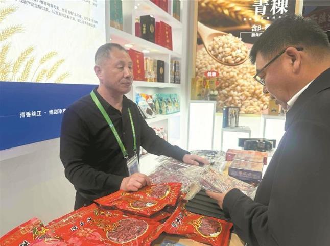記者穿梭在涌動的人潮里,很快就被一抹獨特的“高原綠”吸引:青海展區(qū)內,印著雪山、草原、湖泊的背景板格外醒目,新鮮的三文魚、飽滿的枸杞、醇香的青稞酒、清甜的黑大麥茶整齊陳列,企業(yè)負責人忙著遞樣品、介紹產地、核算性價比;客商駐足品嘗、俯身翻看產品介紹、輕聲洽談合作細節(jié),每一處熱鬧場景背后,都藏著青海與世界雙向奔赴的鮮活故事。