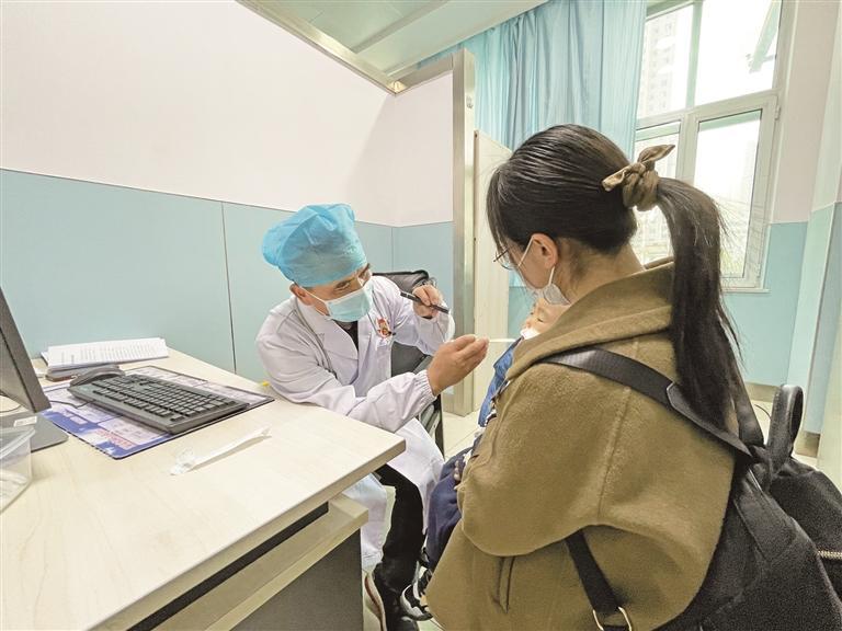西寧市第一人民醫院兒科就診量持續攀升,門診、輸液區域隨處可見抱著孩子的家長。診室里,醫生正忙著為患兒查體、問診、開具醫囑,詳細詢問癥狀、排查病因,診療秩序忙碌而有序。