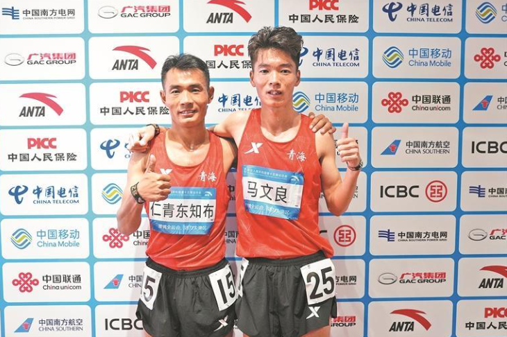 在混采區(qū),馬文良看著隊(duì)友仁青東知布激動地說:“我?guī)熜质巧蠈萌\(yùn)會的馬拉松冠軍,我要向他看齊。今天,我特別感謝他,是他‘犧牲’了自己為我爭取了更多發(fā)揮的空間,這塊獎牌的光芒是屬于我們這個團(tuán)隊(duì)的。”聽馬文良這么一說,本就比較靦腆的仁青東知布有點(diǎn)不好意思:“他真的很優(yōu)秀,下一個四年,我們還要一起努力,一起加油。”采訪結(jié)束時,他們自豪地說:“我們的家鄉(xiāng)是青海省海北藏族自治州,我們都是蘇偉教練的學(xué)生。”