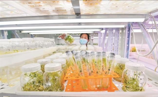 在青海,一粒看似普通的馬鈴薯,因被注入科技“芯片”,正深刻改變著整個(gè)產(chǎn)業(yè)的發(fā)展水平和質(zhì)量。優(yōu)質(zhì)脫毒種薯是推動(dòng)馬鈴薯產(chǎn)業(yè)高質(zhì)量發(fā)展的關(guān)鍵所在。在青海大學(xué)農(nóng)林科學(xué)院的實(shí)驗(yàn)室中,王艦教授帶領(lǐng)團(tuán)隊(duì)正借助解剖鏡,對馬鈴薯莖尖分生組織進(jìn)行一場精細(xì)如“心臟手術(shù)”般的操作。那個(gè)如同針尖般的組織,經(jīng)過精準(zhǔn)剝離、無菌培養(yǎng)與科學(xué)誘導(dǎo),最終煥發(fā)新生,育成一株健康的脫毒苗——這正是科技賦能農(nóng)業(yè)的生動(dòng)寫照。