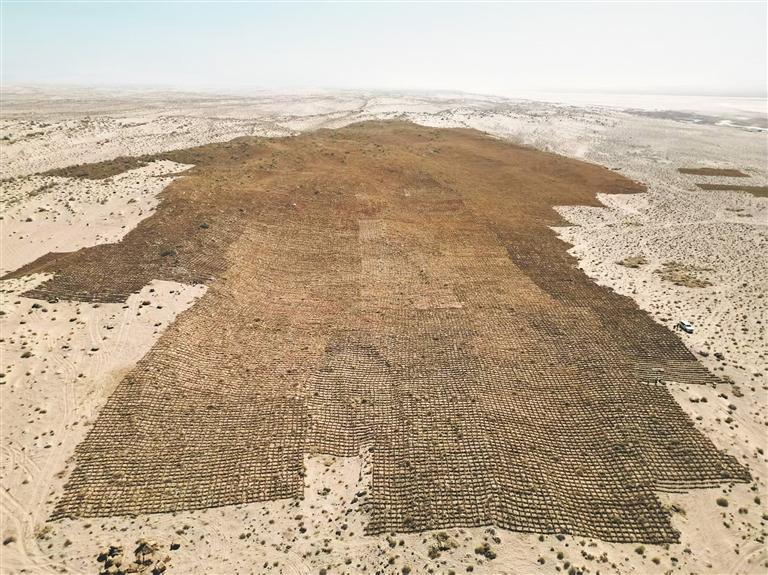 讓昔日流動的黃沙穿上“鎧甲”,中鐵二十三局為青海戈壁荒漠澆筑“綠色坐標”。中鐵二十三局集團有限公司農林生態分公司供圖