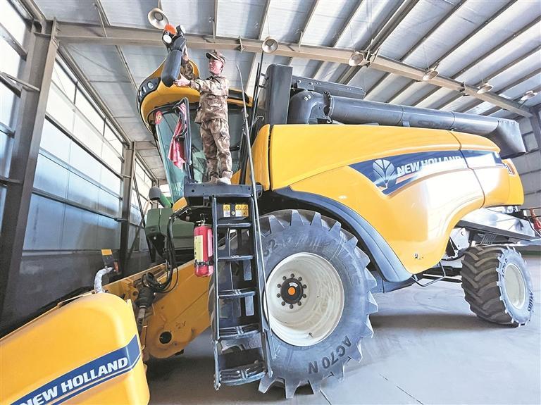 在青海省三江集團牧草良種繁殖場有限責任公司的機械設備庫內,停放著各種新型先進農機設備。公司已經實現從種植到收割的全程機械化作業。本報記者 祁萬強 攝