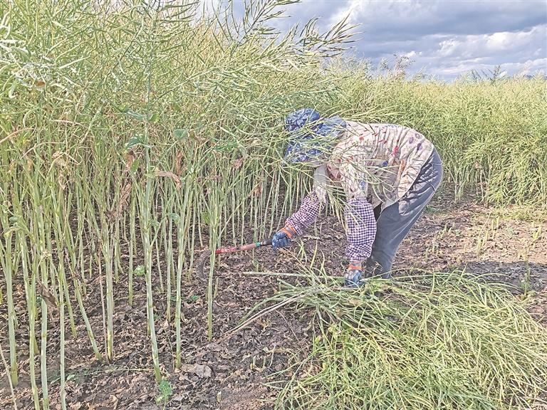 8月,位于互助縣的雜交油菜種植基地內,農戶采收油菜。